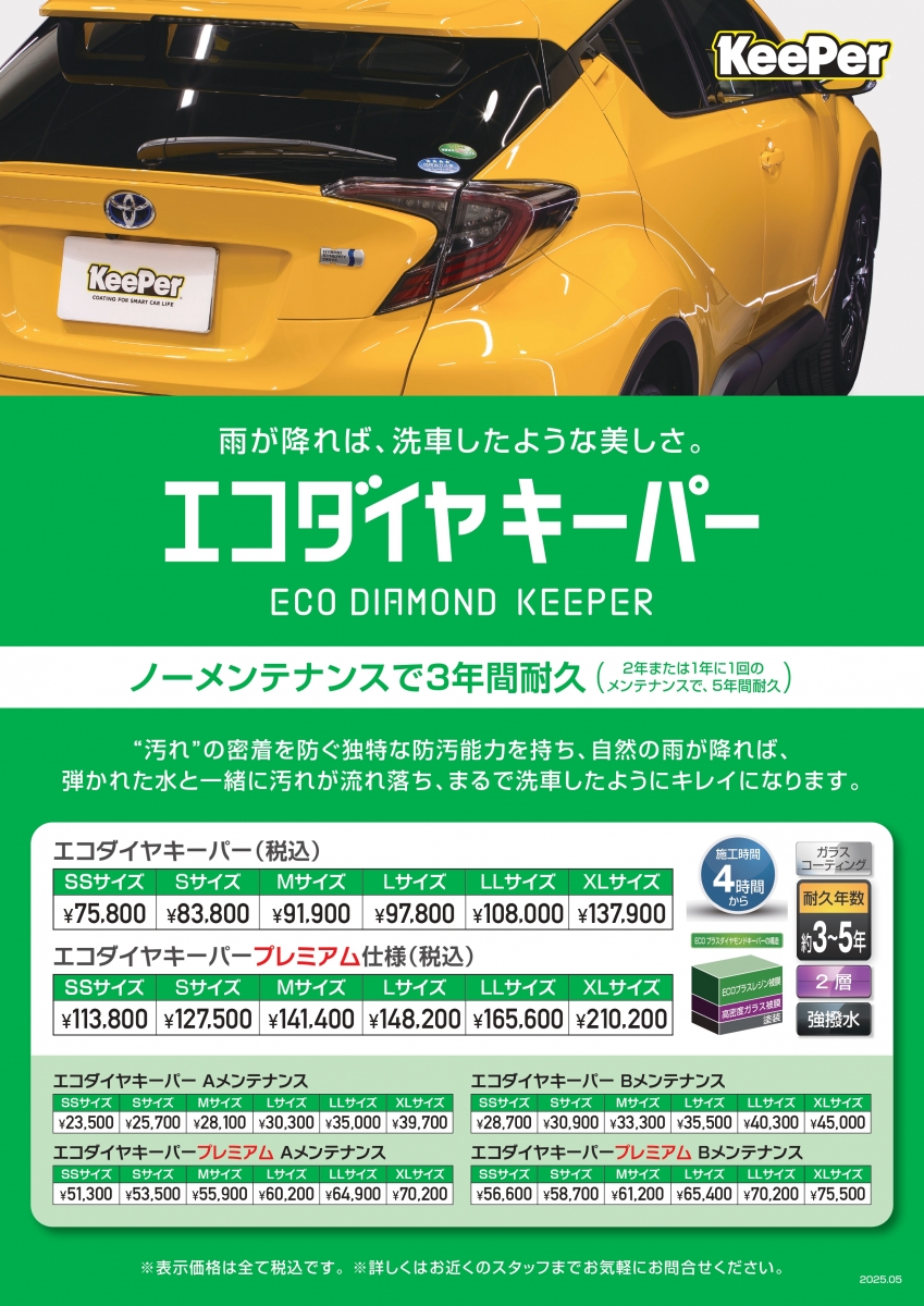 防汚能力は劣りますが、ツヤに特化したダイヤモンドキーパーです!