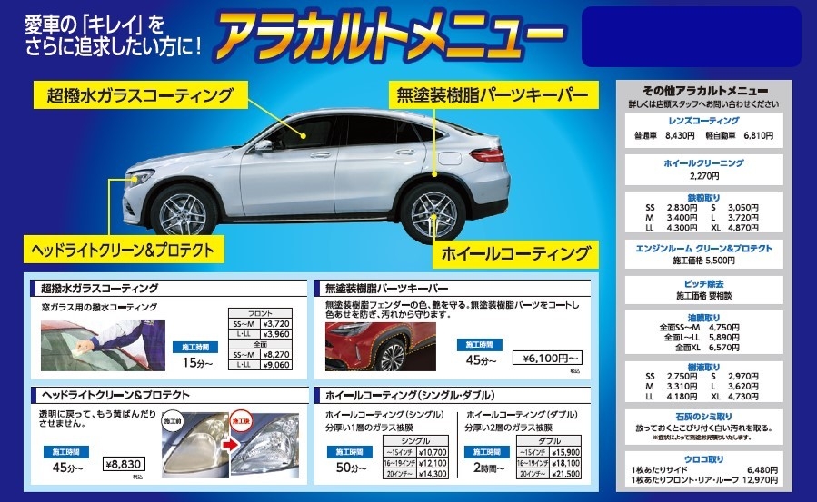 気になる汚れ等のお悩みがある方は当店の技術認定を取得しているスタッフにご相談下さい。 お客様の「キレイ」にお応えすべく カーコーティングや洗車、車の「キレイ」に関することは何でもご相談ください!