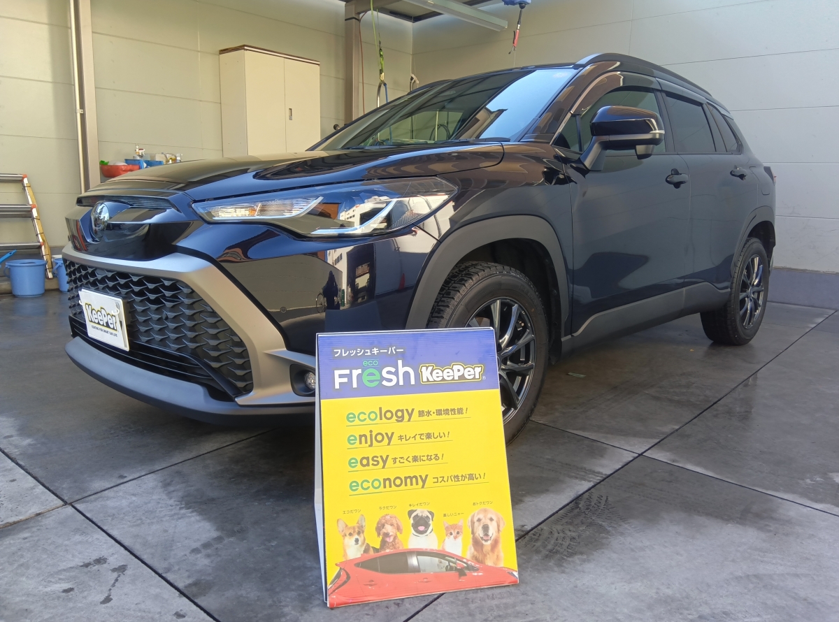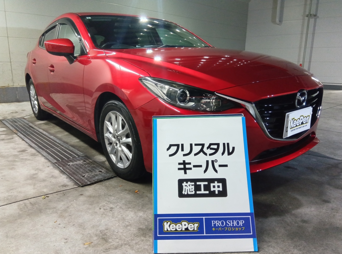 塗装を傷めない「爆ツヤ※」(濃い色の車にも有効)というKeePer独自のプロ専用のクリーナーでキレイに除去した上に、コーティングします。
