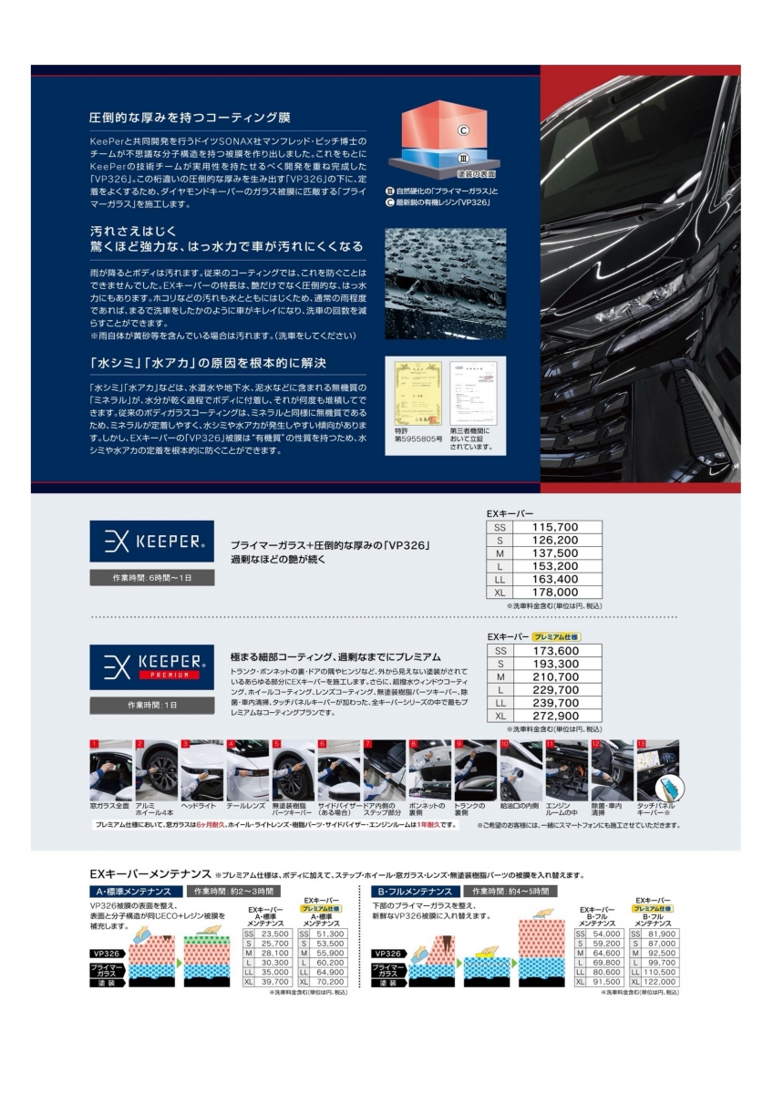 他にもまだまだあります!キーパーコーティングメニュー!