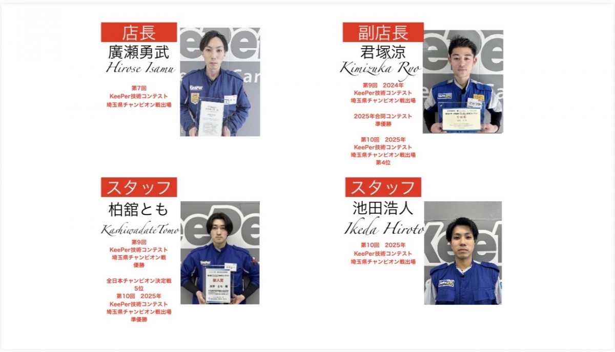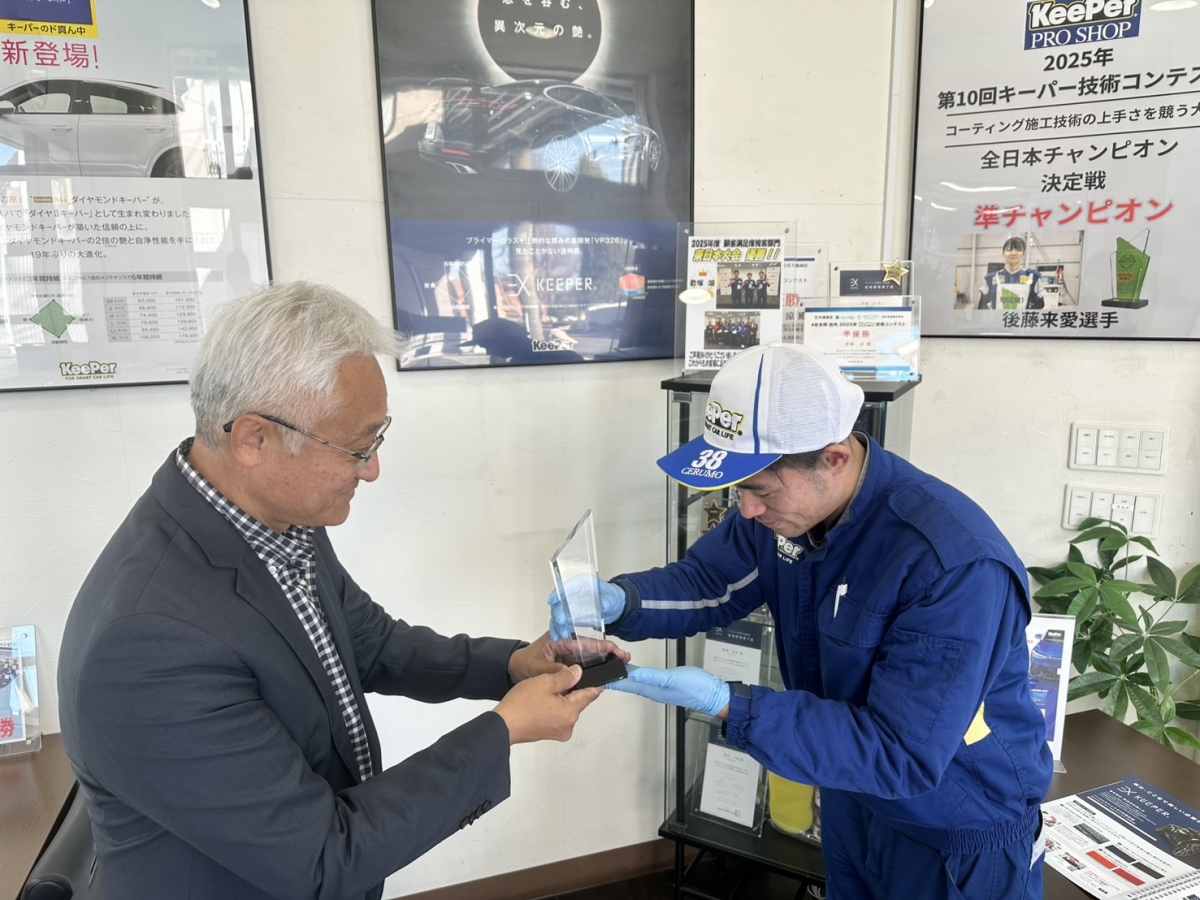 コーティング技術認定者のみが自信を持って皆様のお車をキレイにいたします。 毎年開催されるキーパー技術コンテストでは6大会連続で県入賞しております。