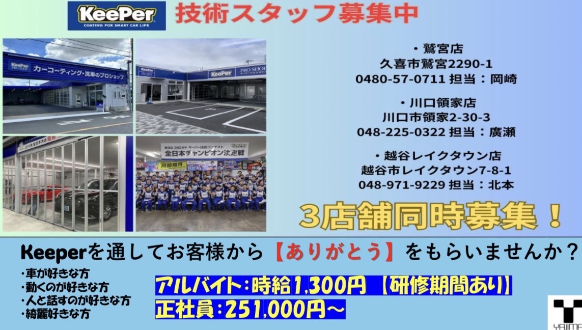 ㈱矢嶋商店が運営するキーパープロショップ川口領家店、久喜鷲宮店、