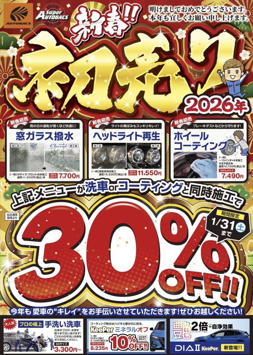 今年最初のキャンペーンです❗️オプションメニューが大変お得‼️ 是非ご利用下さい❗️