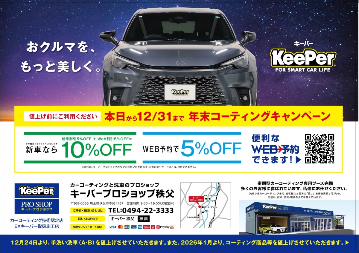 ※なお、年末繁忙期料金として洗車コース(A・B)はR7.12/24(水)~値上げ対応とさせていただきますでのご了承ください。