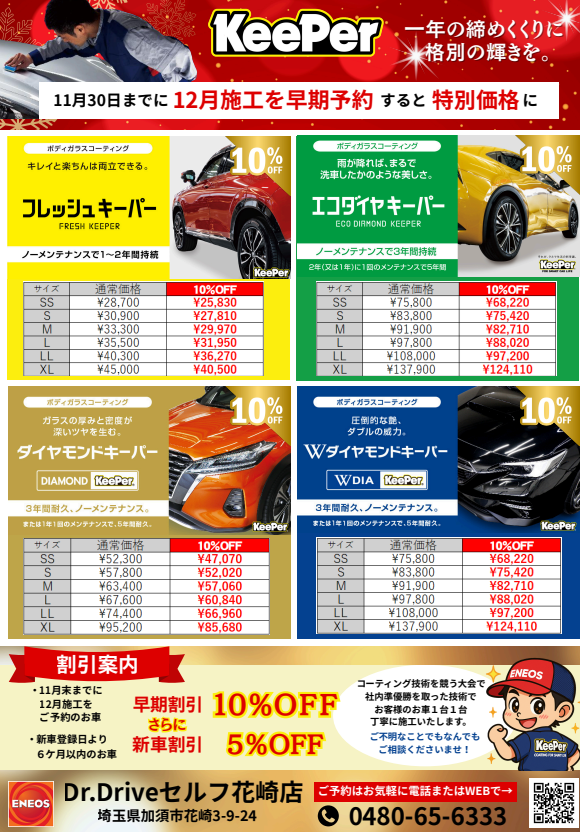 当店では手洗い洗車場、専用コーティングブースを完備しているキーパープロショップです