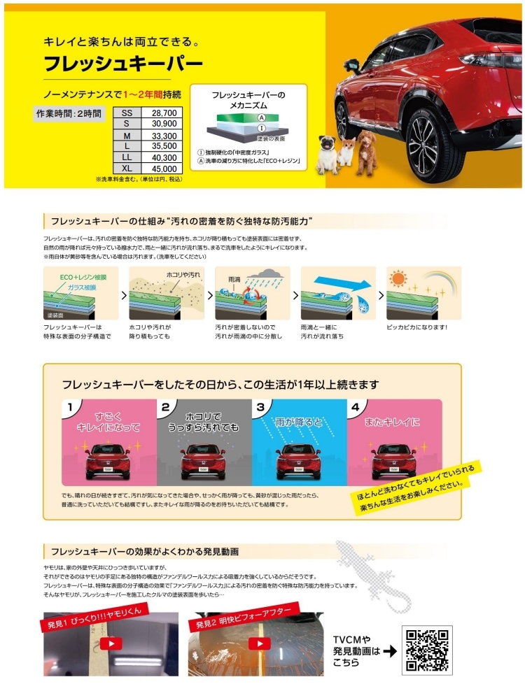 ・洗車では落ちないガンコな汚れを落としつつ、塗装表面を保護するポリマー被膜を形成。 汚れが付きにくくなりおクルマの価値を守ります。