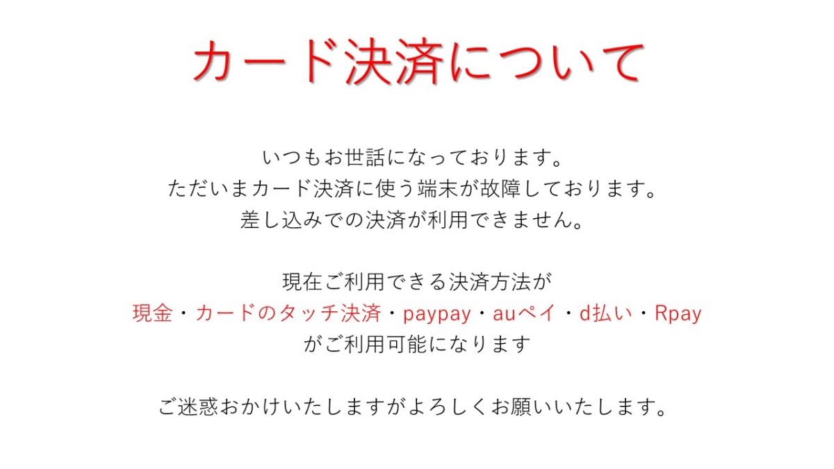 クレジット払い、電子マネー、QR決済対応。