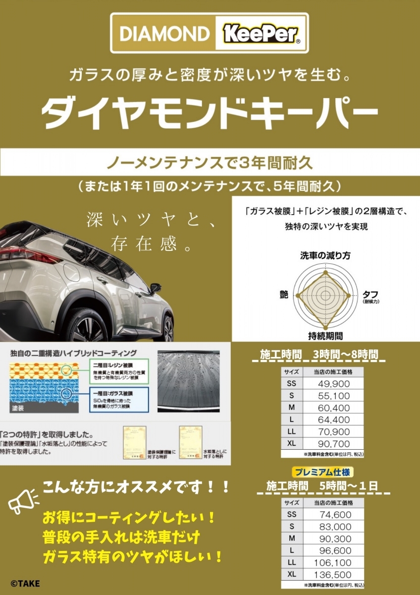 いまキーパーコーティングをお考えのお客様!是非、当店にお任せください!