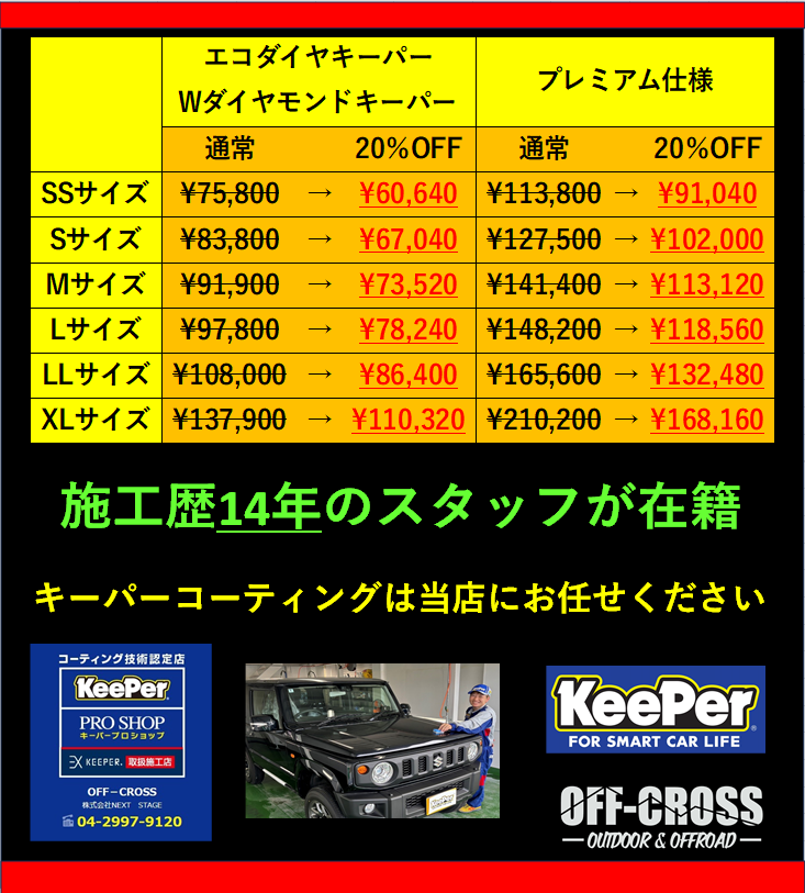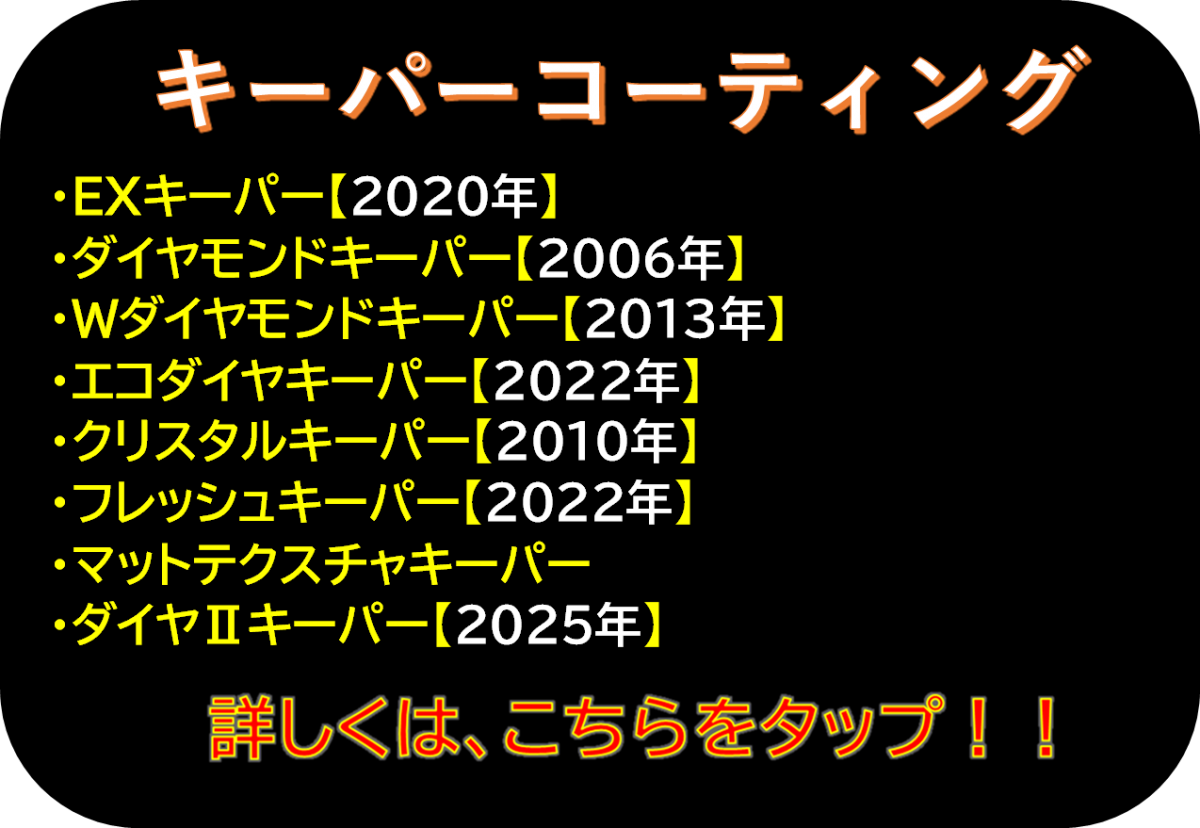 万が一、keeperコーティングをして、車を鈑金塗装することになってしまったら、塗装し直した部分は、コーティングがなくなってしまいます。修理した箇所の部分コーティングをさせていただきます。1パネルにつき、コーティング価格の15%です。どうかスタッフまでご相談ください。