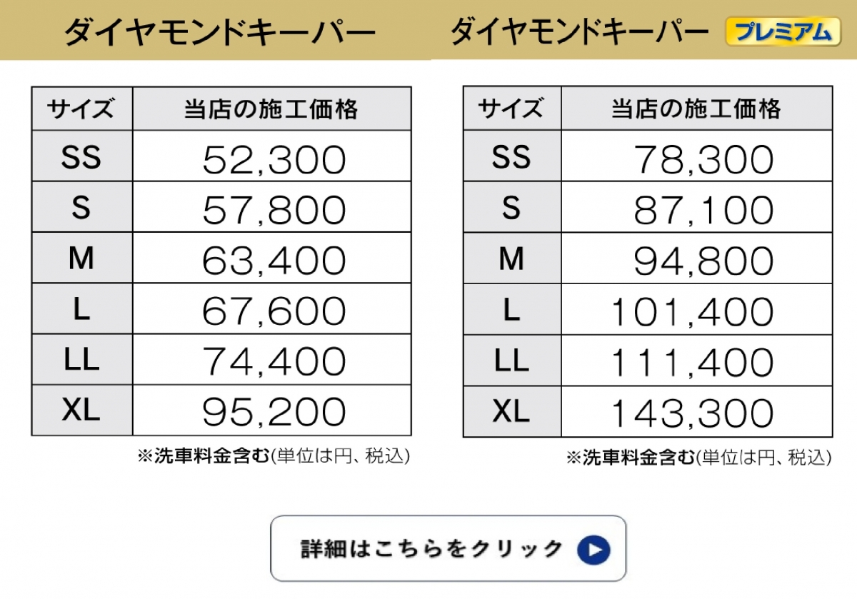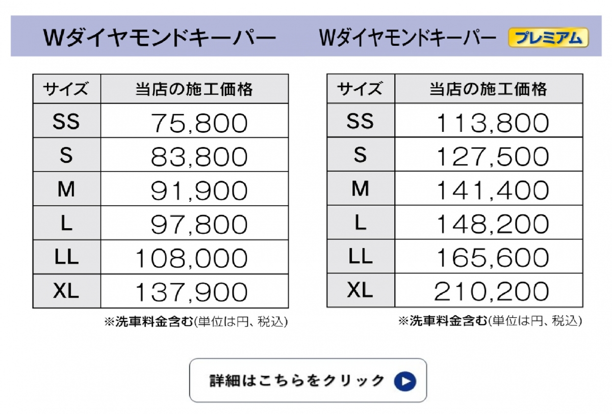 【ダブルダイヤモンドキーパー】 ダブル・ダイヤモンドキーパーは、1層目のガラス被膜を2回塗り重ねることにより、 より厚いガラス被膜をつくり、三層構造のより深いツヤを実現します。 ダイヤモンドキーパーを超える濃厚な輝きをお求めの方に。施工時間10~18時間。