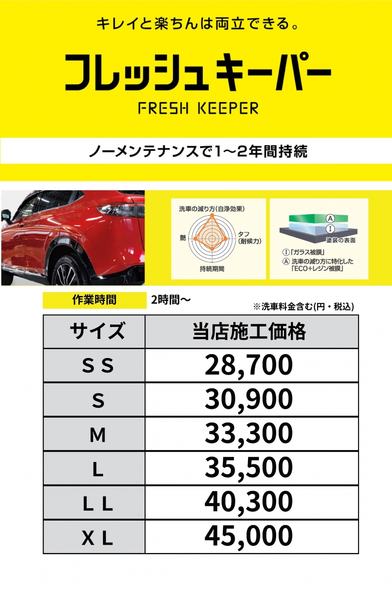 代車(無料)も完備しておりますので、コーティングの際もご利用いただけます。