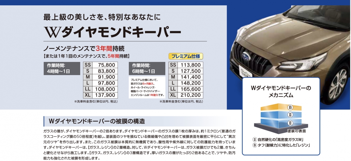Wダイヤモンドキーパー プレミアム 最上級のコーティングを求める方に! 外から見えない隅々までコーティング致します。