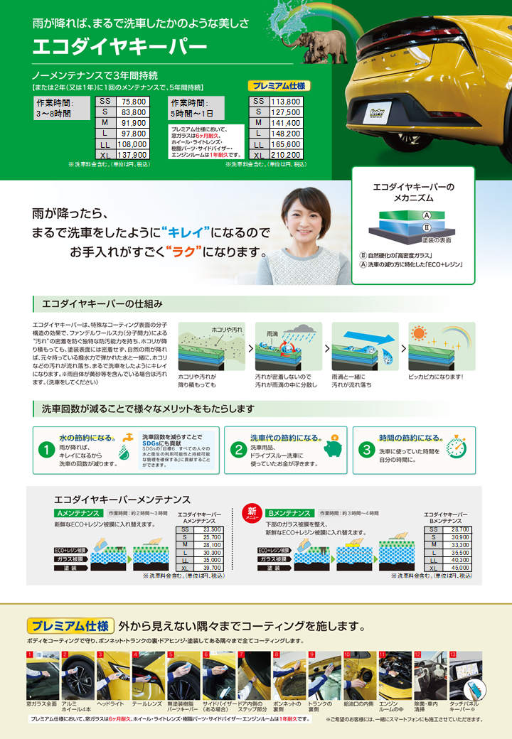 キレイが続く。雨が汚れを落とす新世代コーティング。エコダイヤキーパー