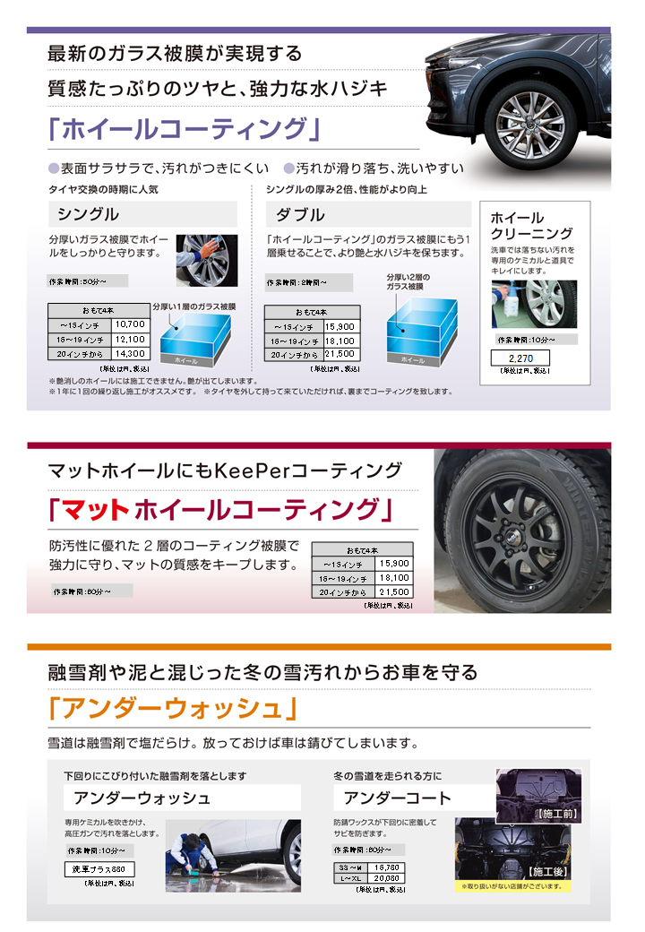 お車の使用環境・洗車頻度や塗装面の状態などを一緒に確認、ご予算・ご要望に沿ったご案内をいたします!