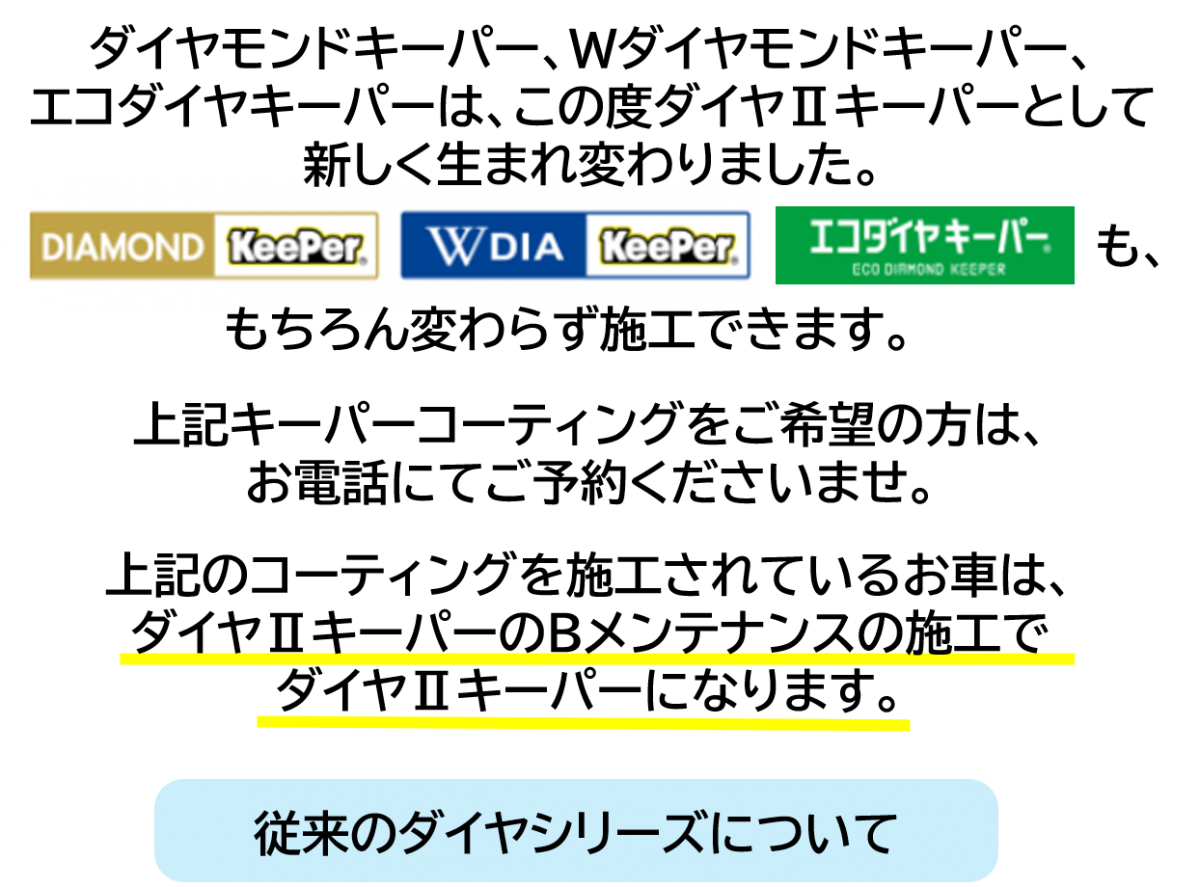 大人気のダイヤモンドキーパー、Wダイヤモンドキーパー、エコダイヤキーパーがこの度、新しく生まれ変わりました!その名もダイヤⅡキーパー!