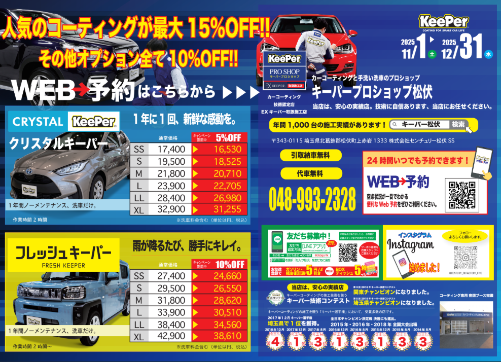 代車もご用意しておりますので、ご予約頂ければお買いもの前にお車を預けて頂いて、お帰りまでにバッチリ仕上げておくこともできます。