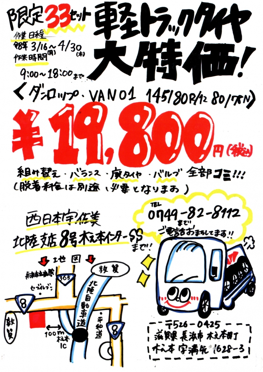 宇佐美タイヤキャンペーン!!