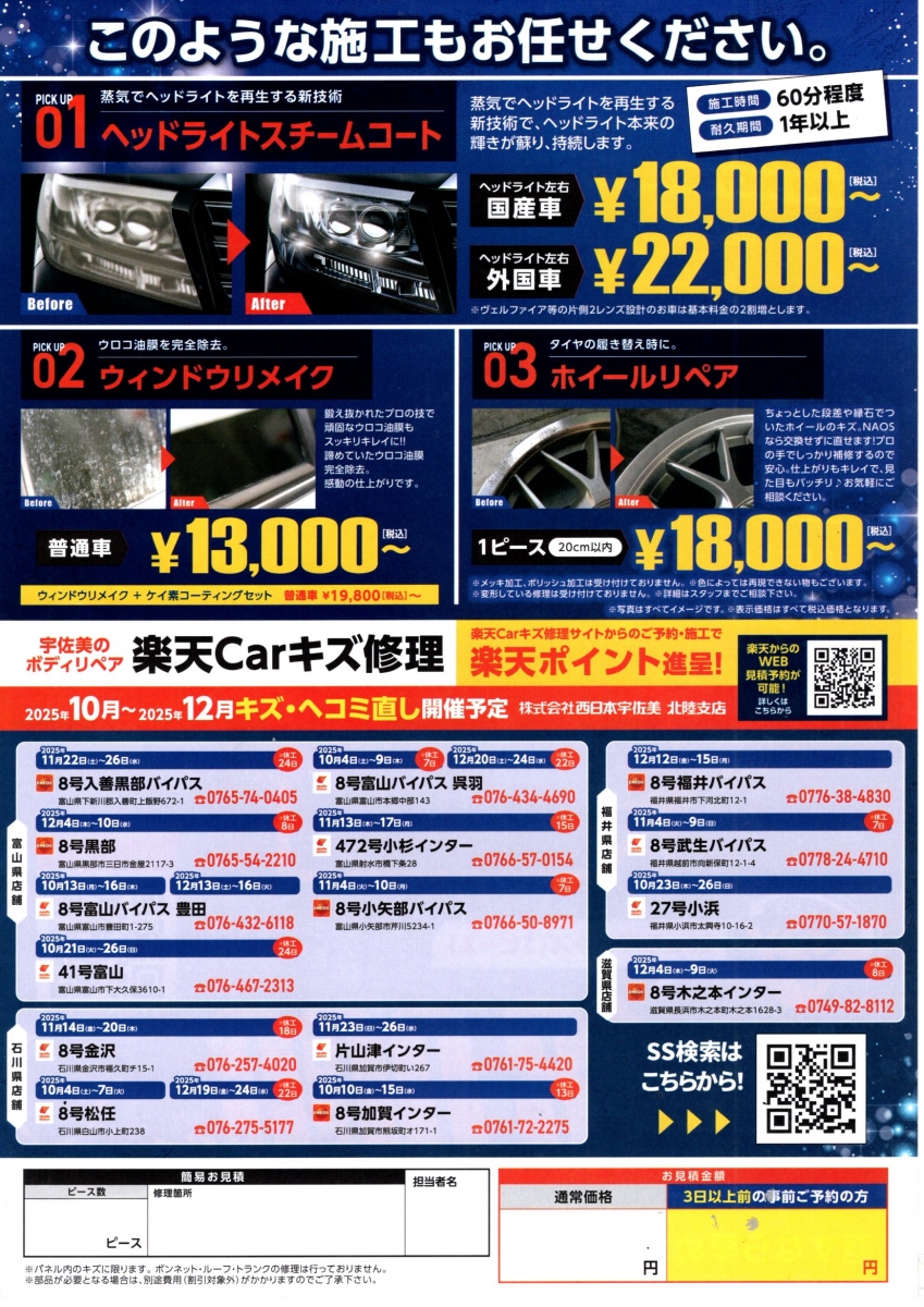 ★キズヘコミ直し 次回の開催は12月です(*´▽`*)ノ