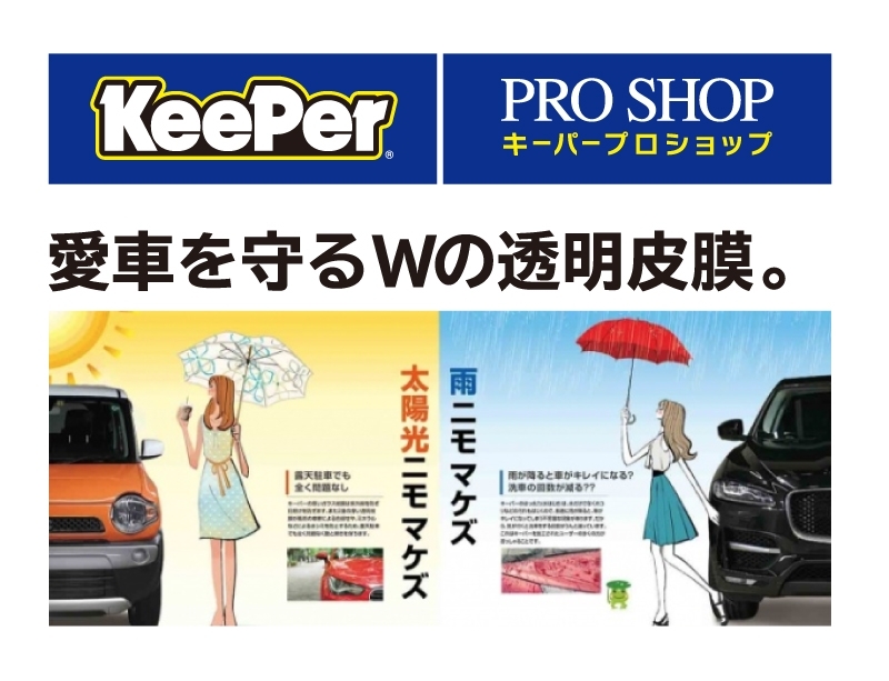 お客様のお車の使用状況やご希望に合った最適なメニューをご案内させていただきます。コーティングはもちろん、普段のお手入れについてや他社様のコーティングのメンテナンスなどでご不明な点があればお気軽にお申しつけ下さい!プロが責任を持ってお応えします♪ キーパー には「Wの透明皮膜」が存在し、雨粒を跳ね返し太陽で傷みにくくなる。これこそが真の醍醐味!!