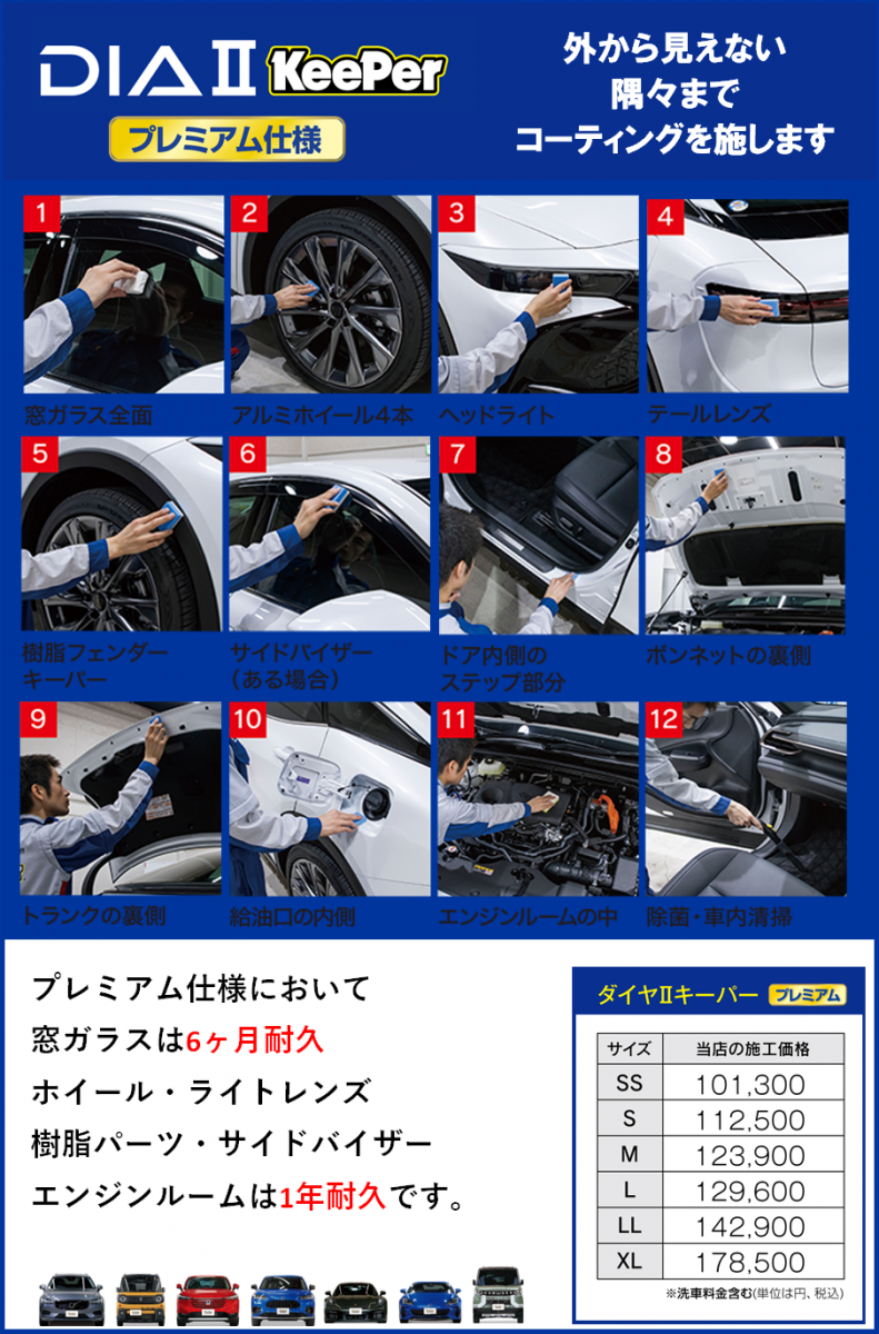 車庫有無、自分で洗車するのが好き、艶・撥水など、好みやライフスタイルに合わせてご提案致します。お客様のお車を見させていただいたければより詳しくご説明できます。