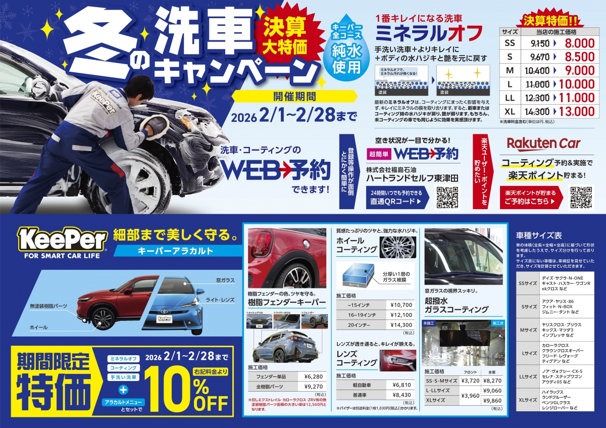 - 手洗い洗車受付時間 8:00~18:00