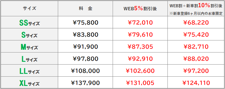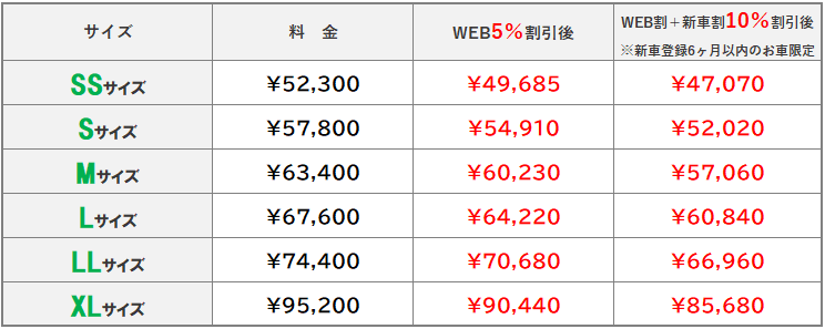 ☆施工料金:フロントだけや前3面などで金額が変わってきます。
