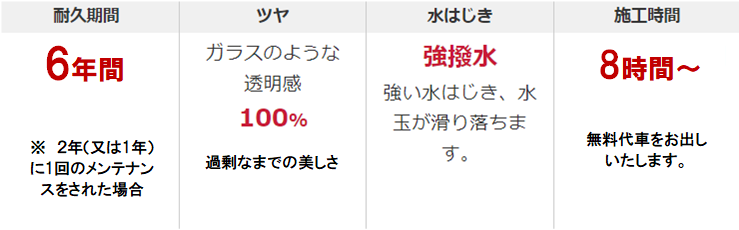 多くのガラスコーティングに入っているキレシンなどの『有機溶剤』を使わないため塗装に優しく、