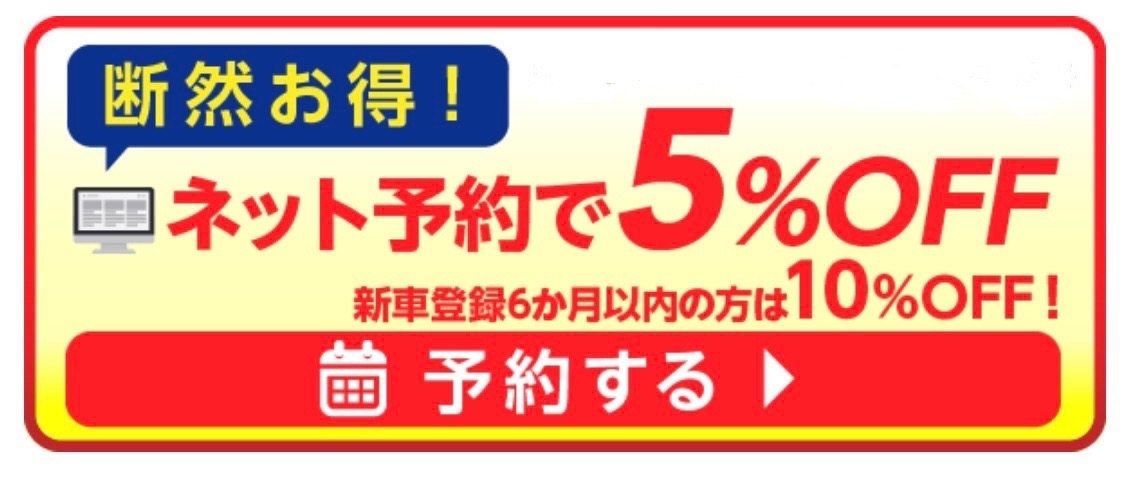 WEB予約なら5%OFFで承ります。さらに、新車登録6ヶ月以内の場合は、新車割引5%OFFです。(EXキーパーは新車割対象外です。)
