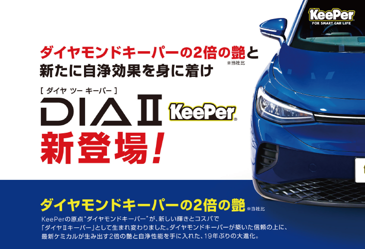 従来のダイヤモンドキーパー比べ、2倍の艶とエコダイヤキーパーのような自浄効果を兼ね備えた最高のコーティングとなります。それに加え、価格帯はダイヤモンドキーパーに+11000円となっており、エコダイヤやWダイヤよりお手頃な価格設定で性能は負けず劣らずの内容となっております。