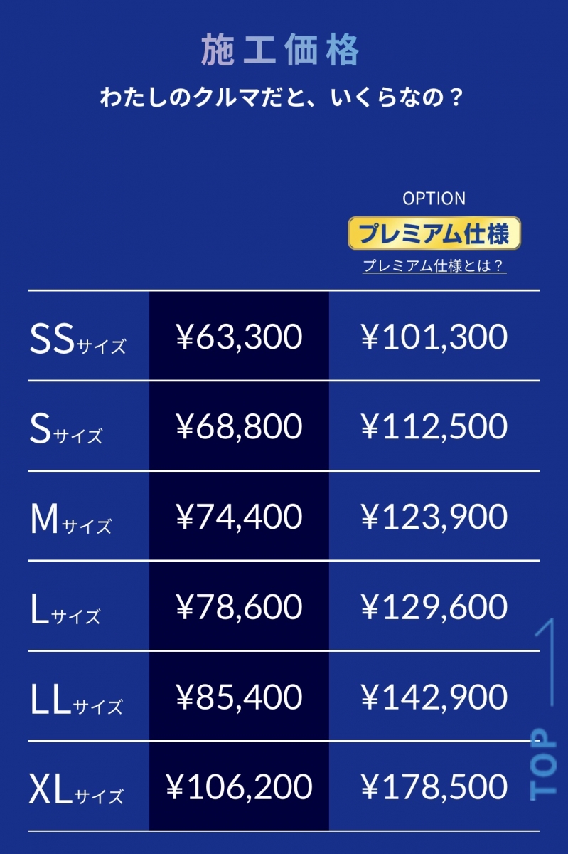 お車のサイズを確認出来ます。