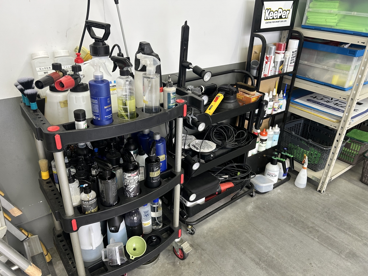 お客様のお車の汚れは多種多彩です。 キレイを作る為、引き出しを多く持つ為に多数のケミカルを所持しております。