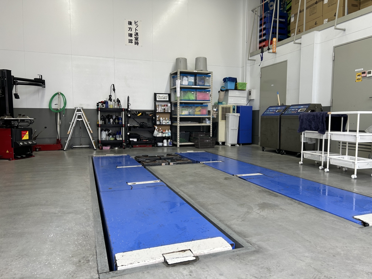 当店には専用ブースは御座いませんが広いピットの中で一台一台丁寧に仕上げさせて頂きます。
