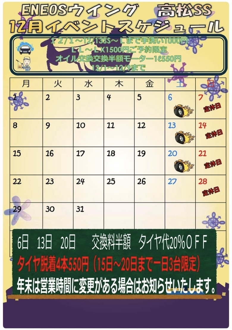 高松SSの冬得キャンペーンで手洗い洗車とオイル交換がお得に