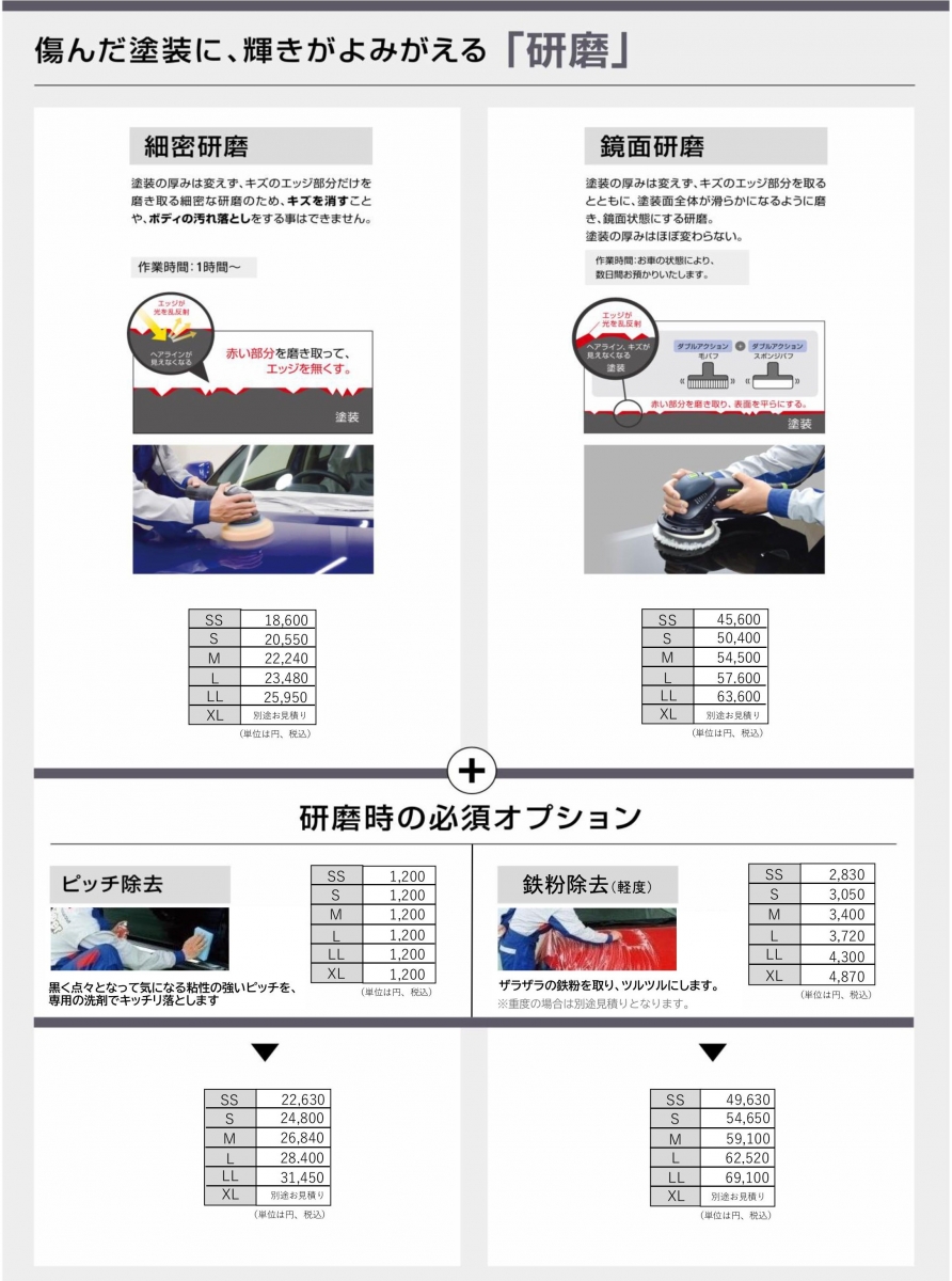 どのメニューも、各部の状態が良いうちに保護することをお勧めいたします。