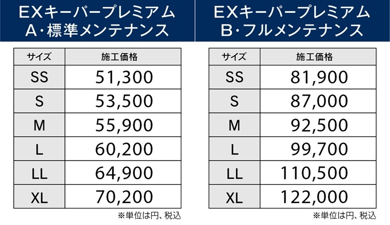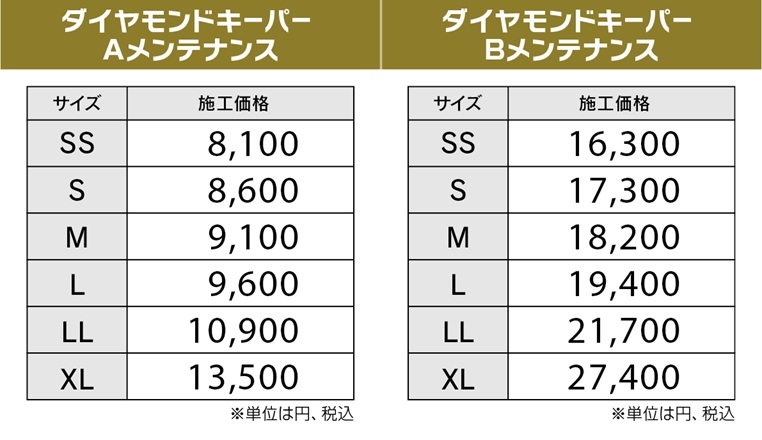 料金はダイヤモンドキーパー施工料金に