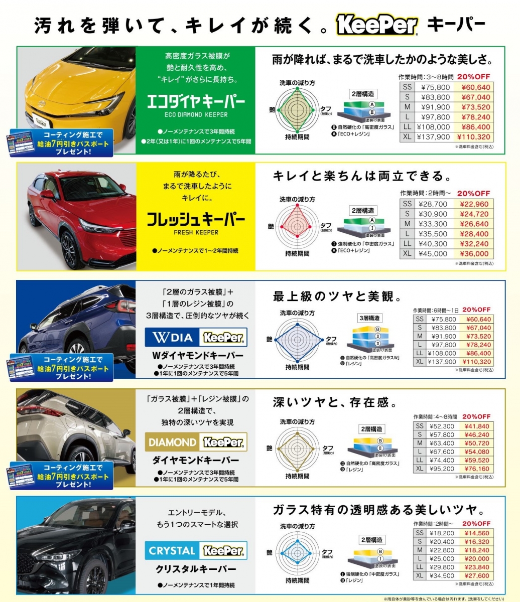 各種キーパーコーティング特徴はコチラをご確認ください!