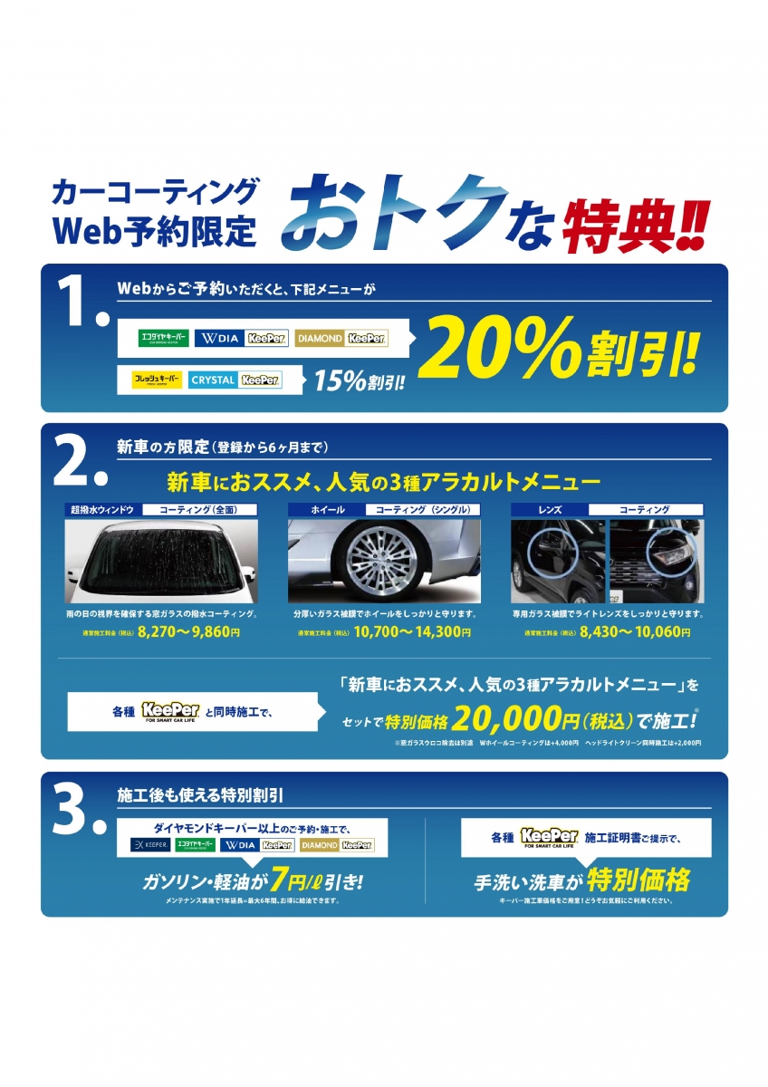 上記3種のキーパーコーティングを当店で施工のお客様へ、