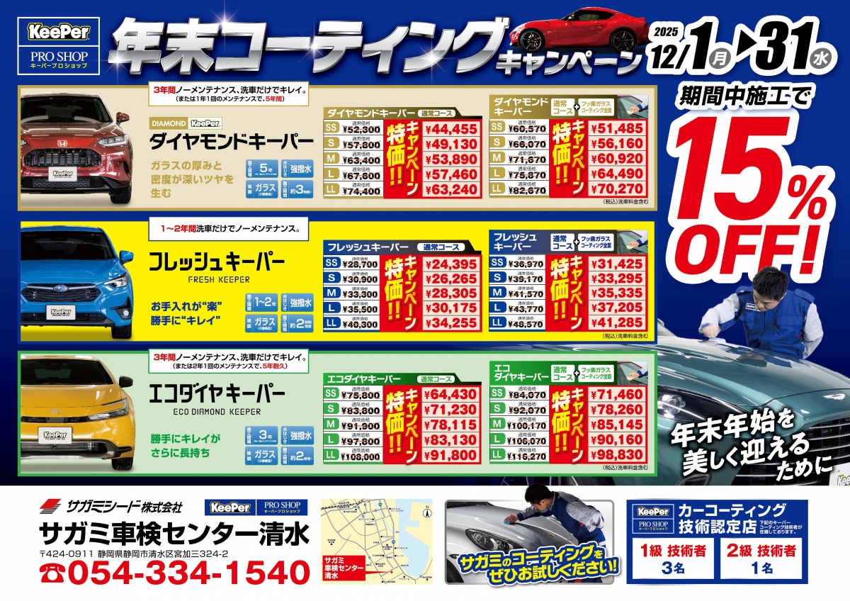12月1日~12月31日の期間で年末コーティングキャンペーン実施中です!