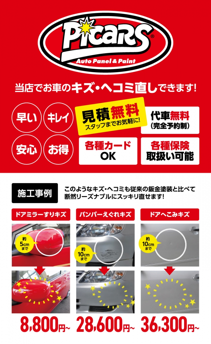 お時間が掛かる場合は、代車の無料貸し出しも行っております。