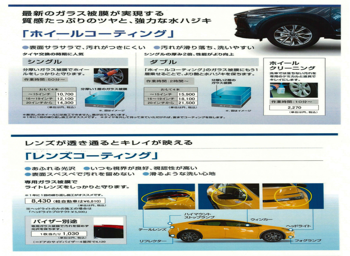 ボディーのツヤや水はじきのお悩みや頑固な汚れなどお車のお悩みにズバッと解決できるお店を目指し、 スタッフ一同技術を磨いております。