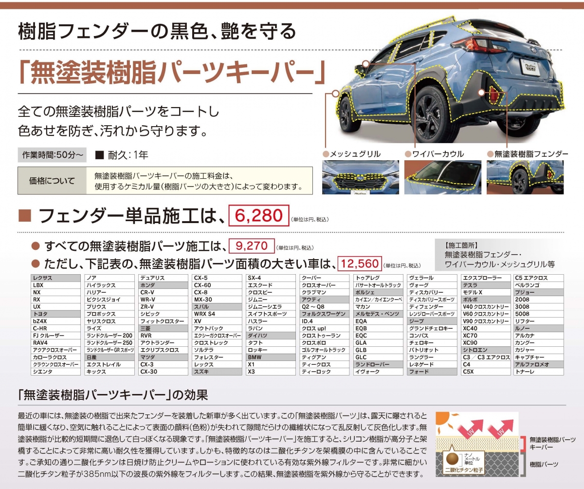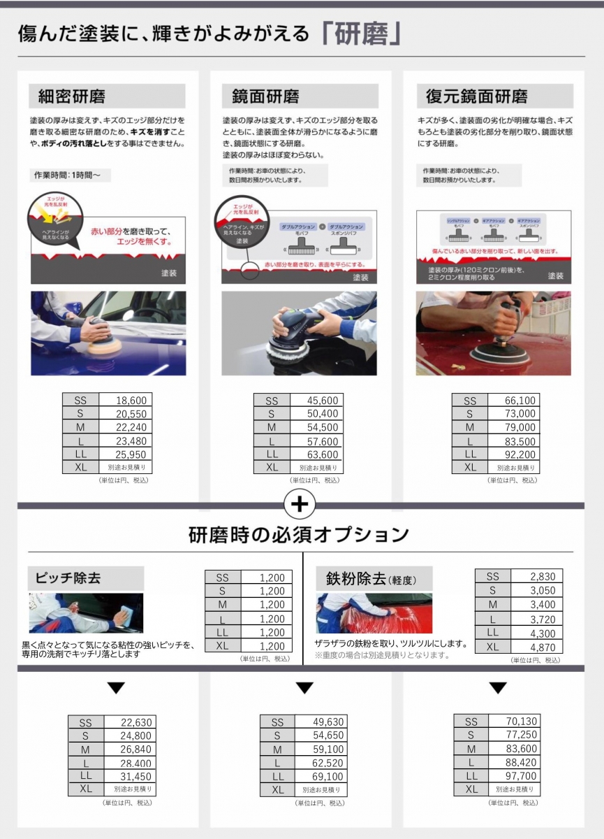 どのメニューも、各部の状態が良いうちに保護することをお勧めいたします。