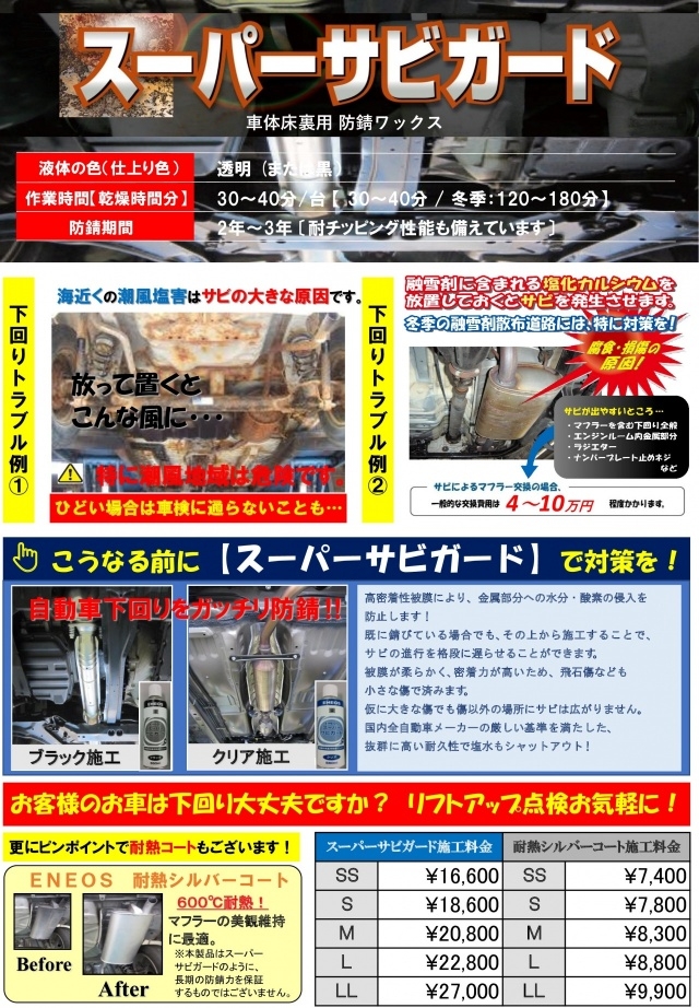 スーパーサビガードで下回りのサビ対策もおまかせ!