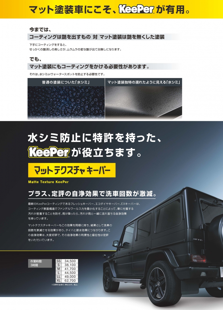 待望のマットカラー(艶消し)車両向け Keeper コーティング登場!