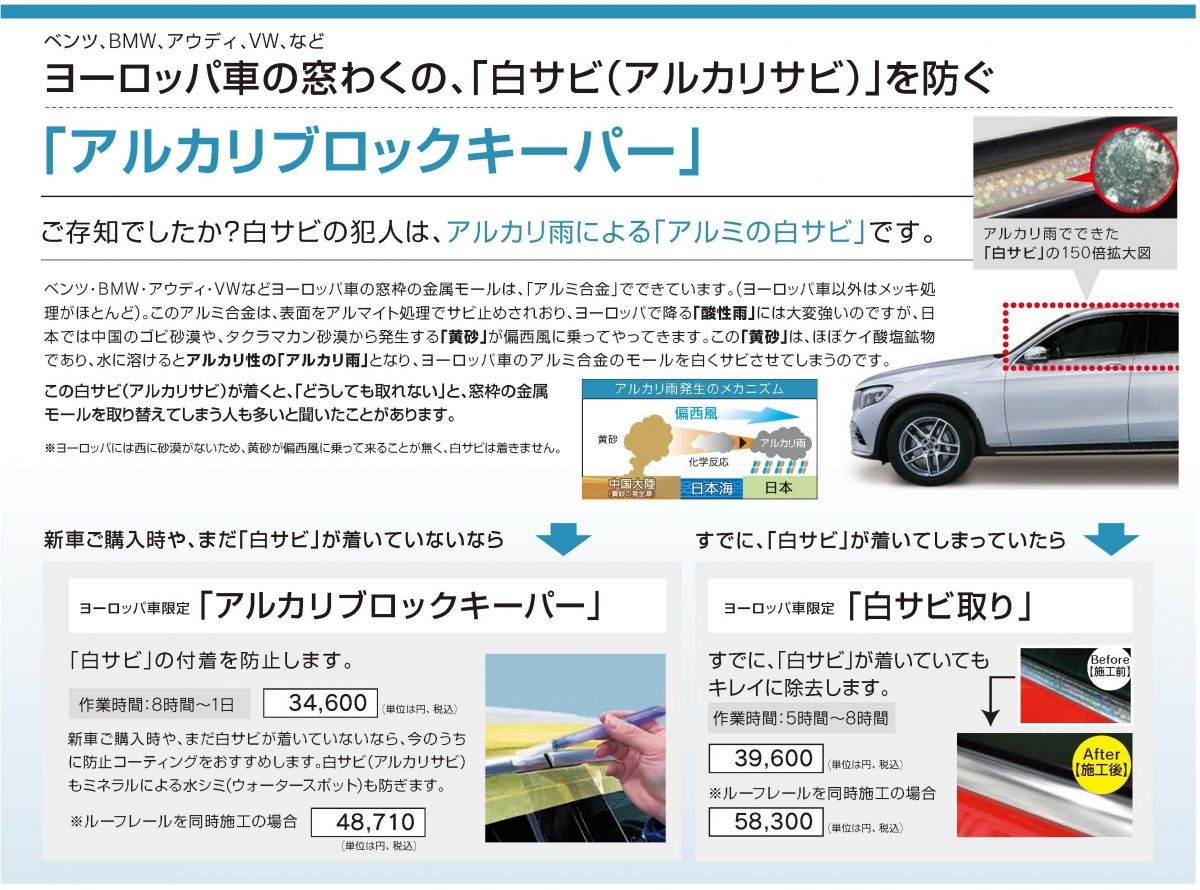 ※当メニューの施工は、ドアモールやルーフレールがアルミ合金製の物に限ります。