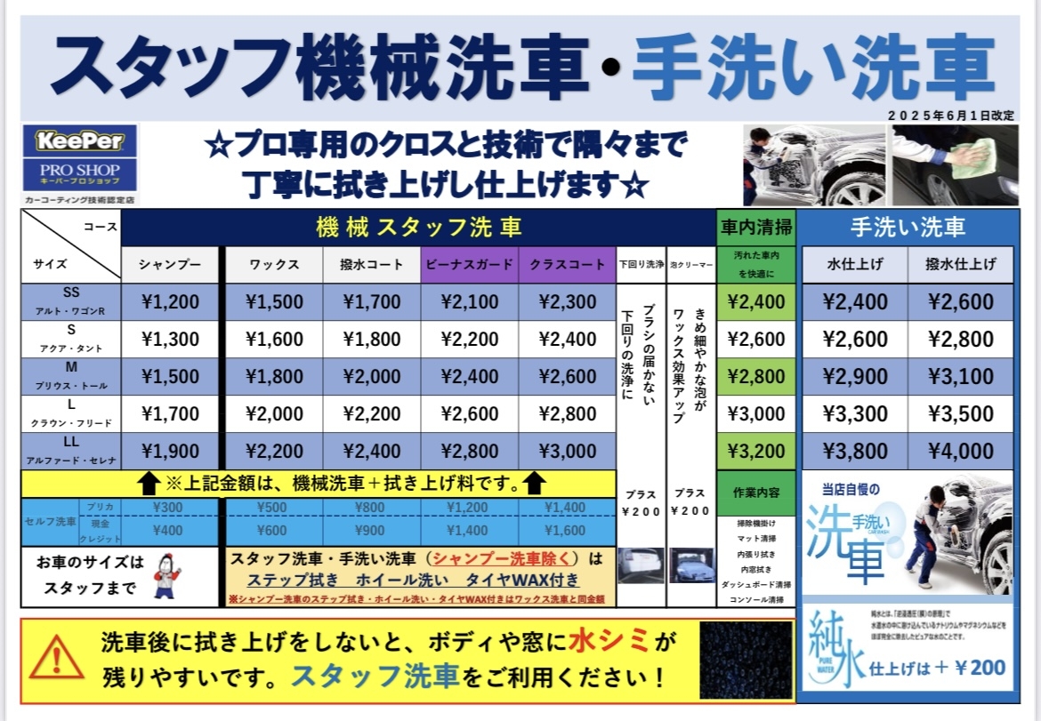 ※キーパーコーティング施工車は手洗い洗車+540円でミネラル取り洗車ができますのでそちらの定期的な施工をおすすめします。