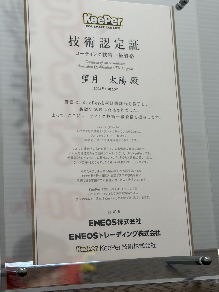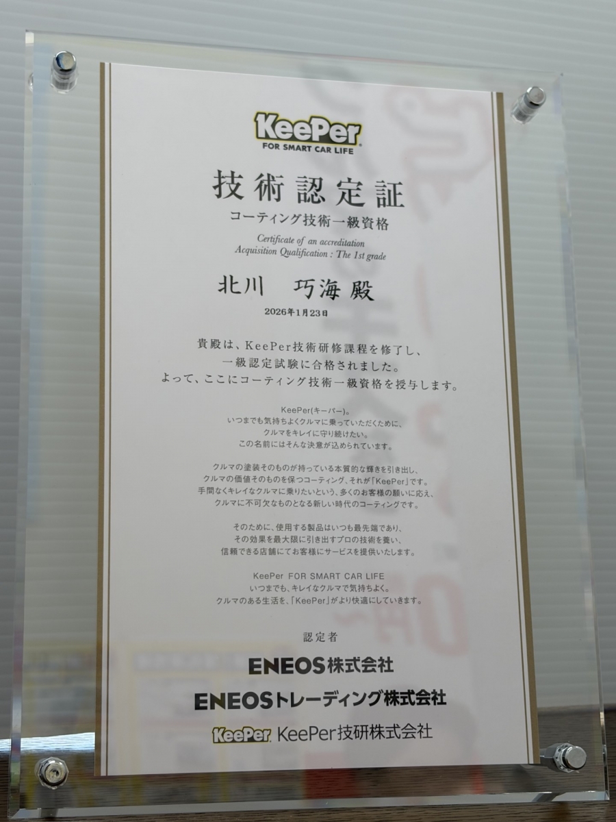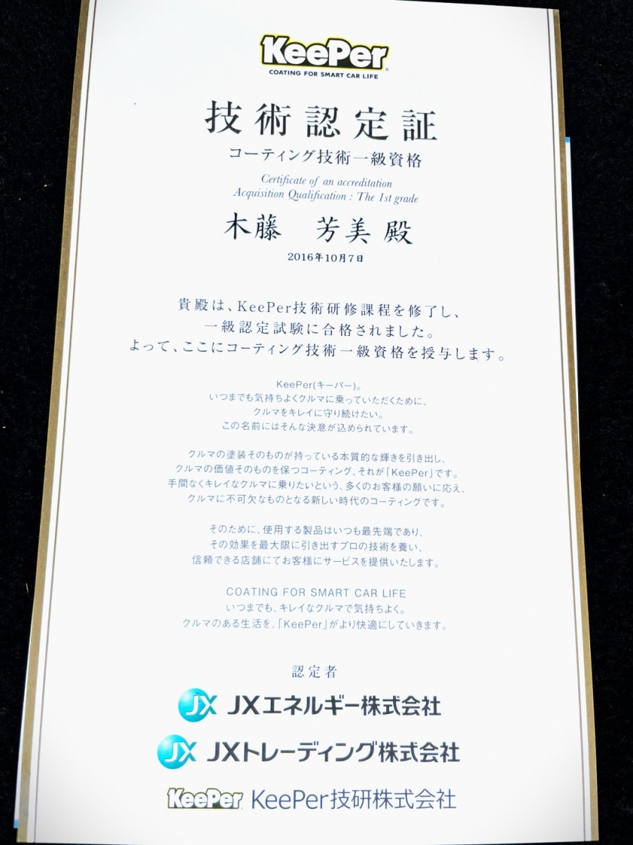 ☆KeePerコーティング1級☆