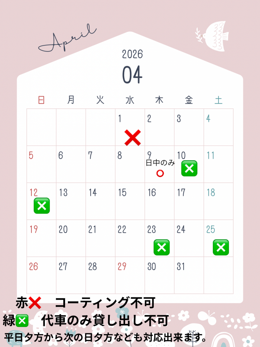 コーティング受け入れ枠+代車増やしました。さわやか券先着50名様プレゼント