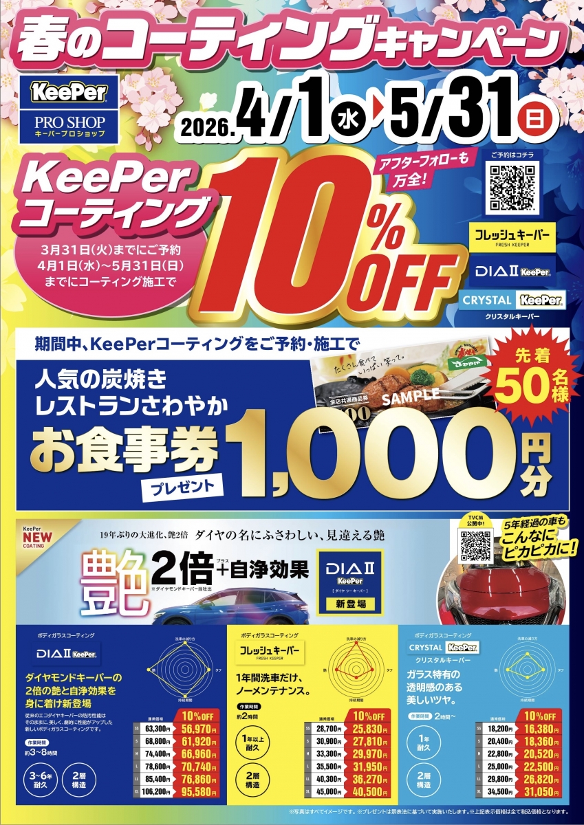 春祭りキャンペーン!4月からコーティング10%off!✨