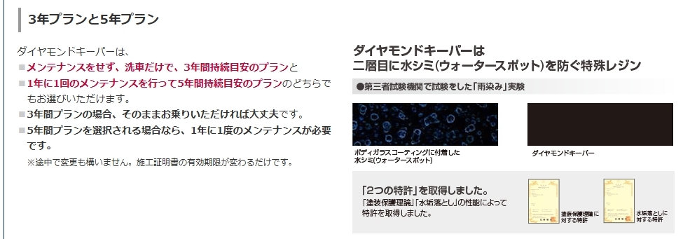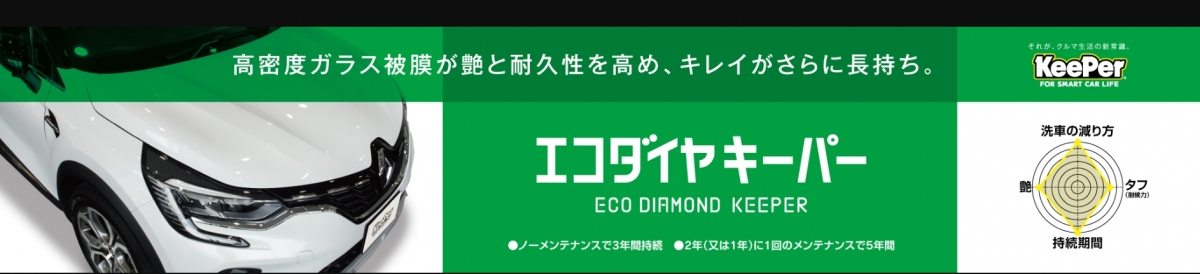 新発売エコプラスダイヤモンドキーパー!! ノーメンテナンスで3年間耐久(2年に一回のメンテナンスで5年耐久) 雨が降ったら、洗車をしたように綺麗になるので洗車代・洗車時間の節約に!!
