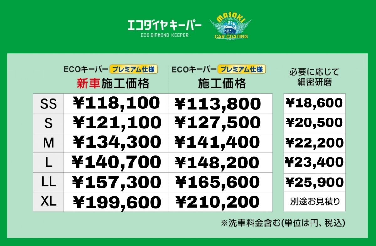 ダイヤモンドキーパーの2倍の被膜の厚みで、更に深い艶と強い撥水力によるお車の価値を守るコーティング。